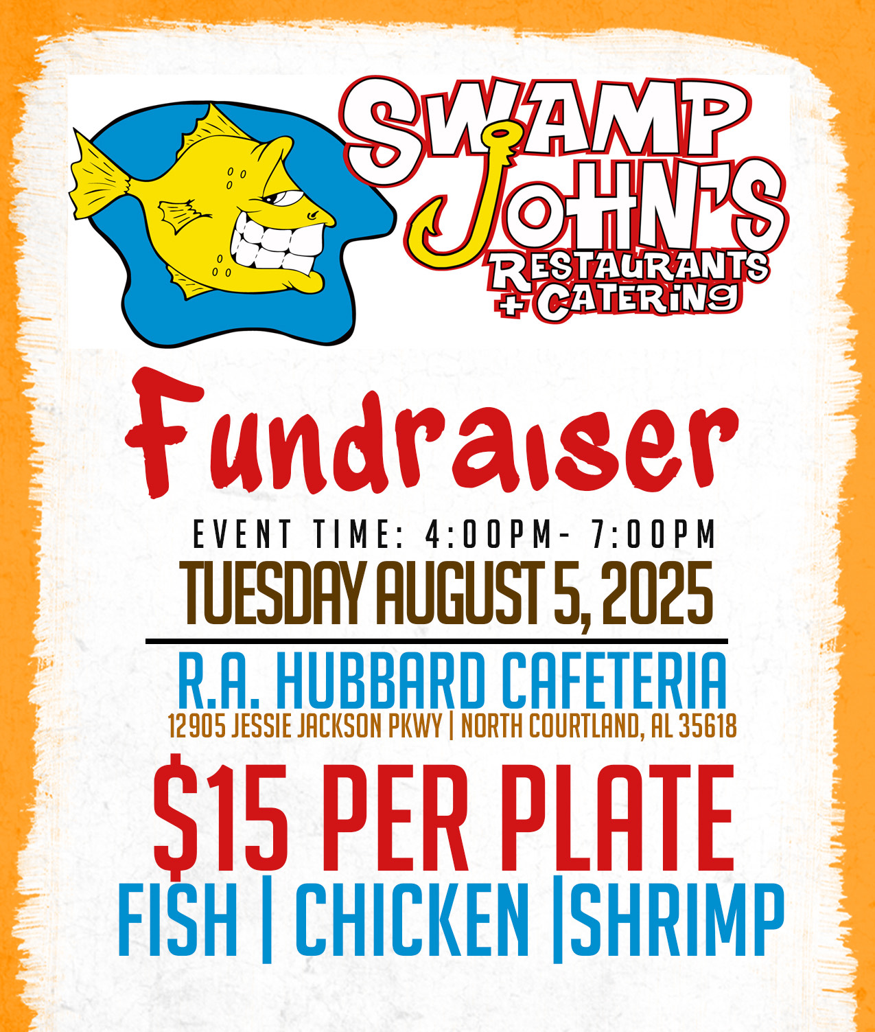 $15 Per Plate – Fish, Chicken, or Shrimp